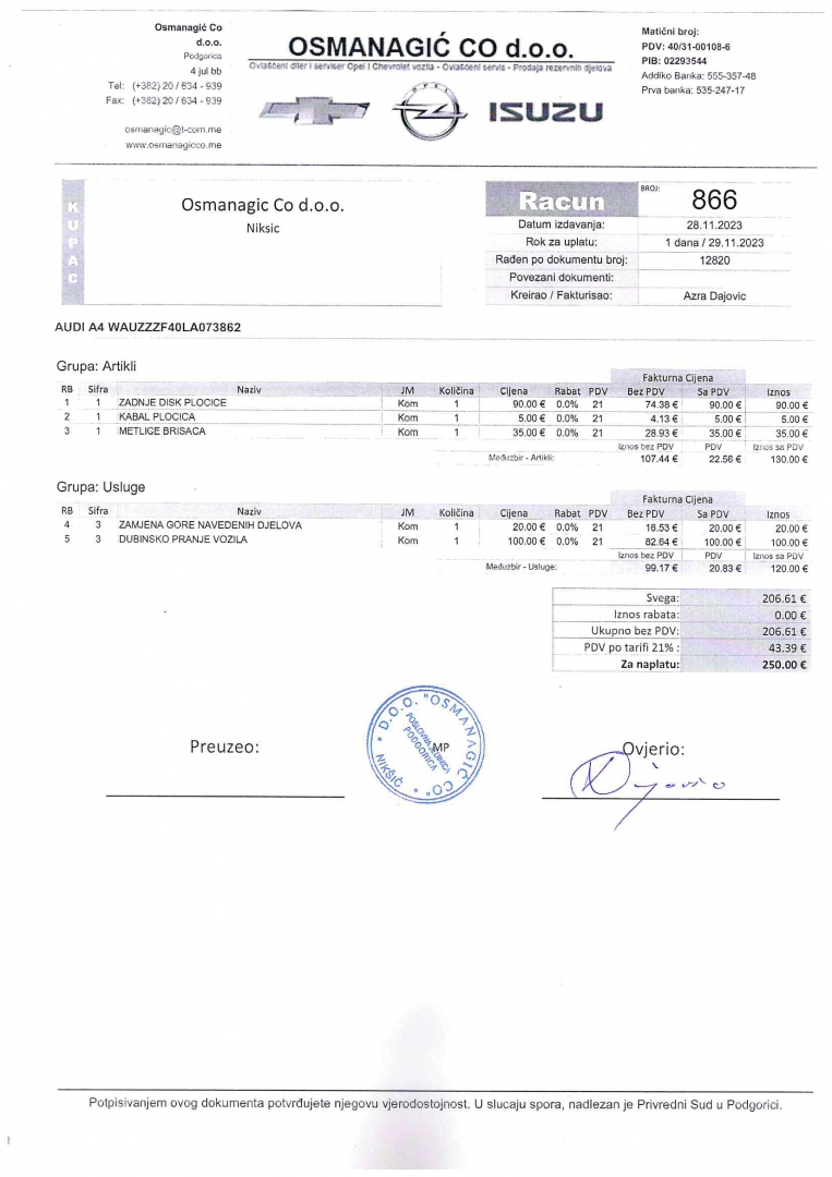 “Osmanagić Co” u svom elitnom salonu i uz tradicionalno visok kvalitet usluge i podrške, garantuje zadovoljstvo korišćenja modela iz svog prodajnog programa. Fleksibilnost u uslovima plaćanja je obezbijeđena kroz našu saradnju sa velikim finansijskim institucijama i leasing kućama u Crnoj Gori.