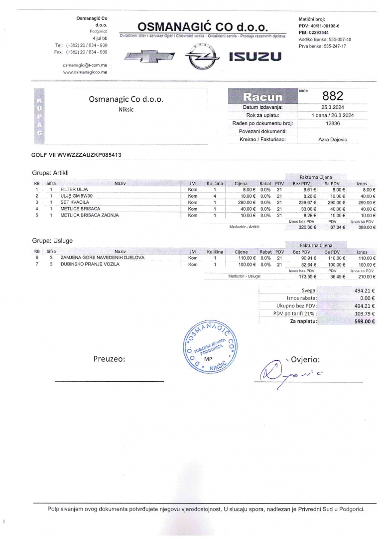 mali servis rađen: 25.03.2024. na 73 254 km
