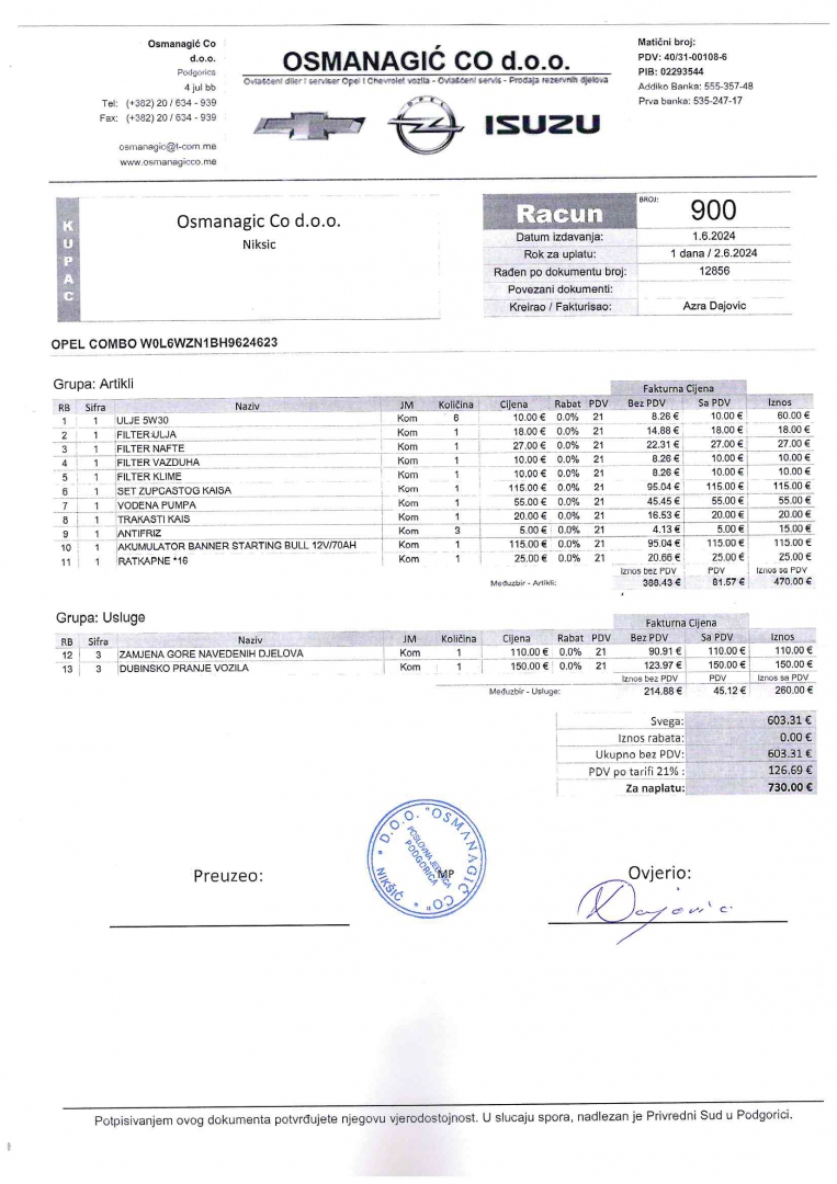 Cijena sa PDV-om 13.285€