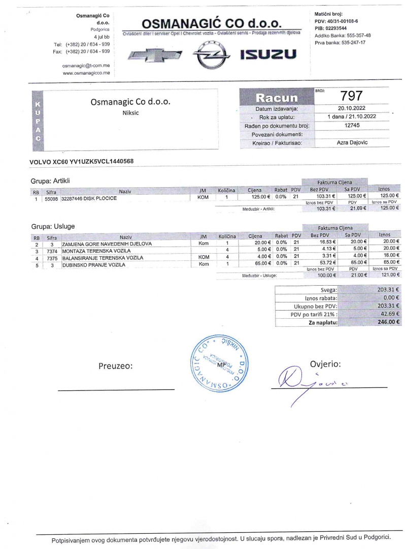 Početna / Podaci vozila
